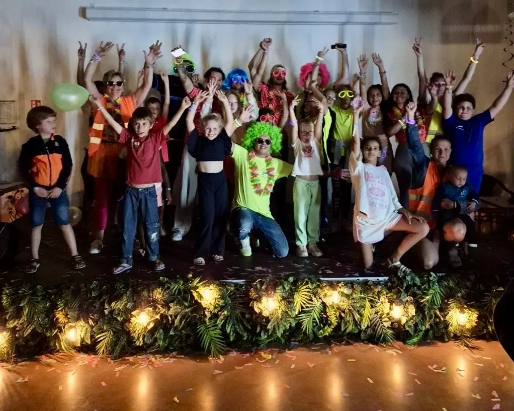Groupe d'enfants lors d'une fête déguisée lumineuse.